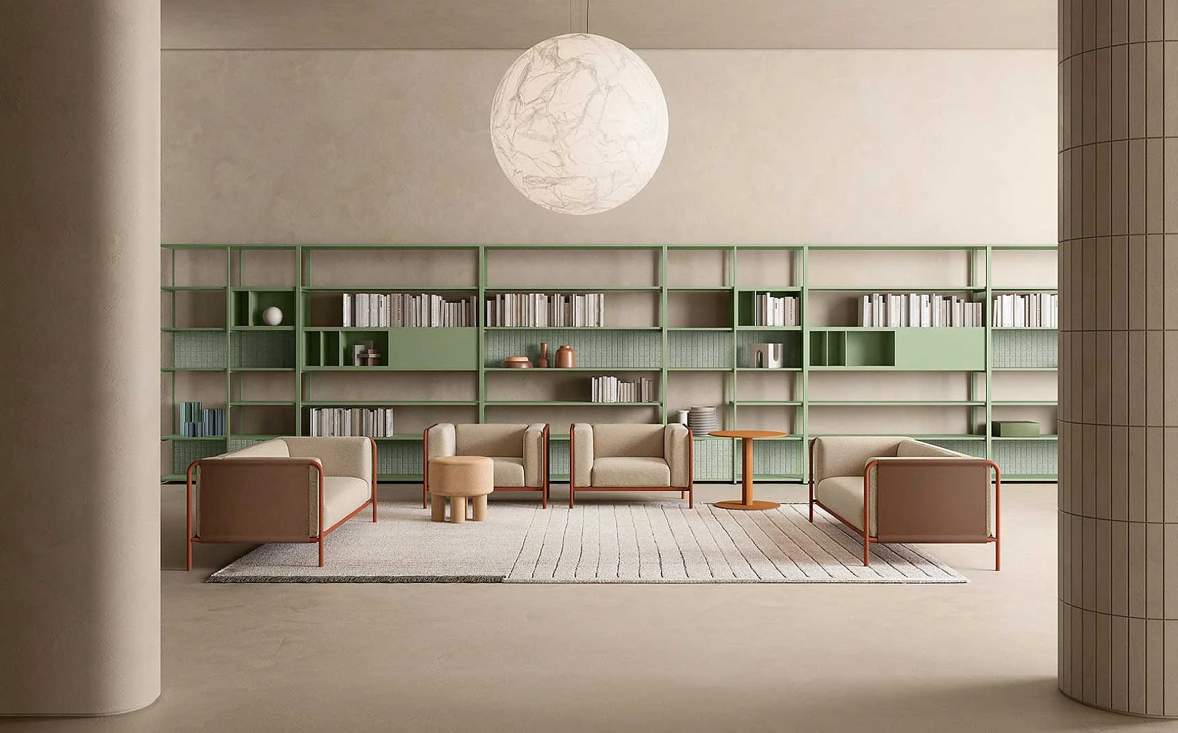 Conçue par DIEFFEBI, la bibliothèque modulable Line System L 640 réinvente l’organisation des bureaux modernes et des espaces domestiques. Ce système d’étagères assemblables combine trois matériaux nobles — métal, bois et tissu — pour créer des configurations sur mesure. Les panneaux textiles thermoformés, avec leur présence graphique distincte, offrent une sensorialité chaleureuse tout en maintenant une esthétique épurée. Idéale pour les espaces collaboratifs, les bureaux de direction et les home offices, cette bibliothèque transforme le rangement en élément de design. Son architecture linéaire s’adapte à vos besoins d’organisation tout en créant du rythme visuel dans votre environnement.